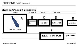 B- The quantity ordered. C- The unit price per product. D- The subtotal per product (quantity x unit price). E- The "Remove" button, which you can use to delete an item from your order. F- The total cost of all items ordered. If you want to change the quantity of a product, go to the "Quantity" field, enter the new quantity, and click on "Recalculate". You can always increase quantities, but you cannot order less than the default quantity displayed. If you haven't finished shopping, click on "Return Shopping" and you'll return to the store. If you've finished shopping, click on "Checkout".